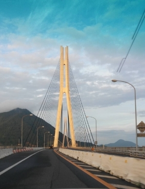 しまなみ海道は今治から尾道の間に大島、伯方島、大三島、生口島、因島、向島と、沢山の島を跨いでいて、結構大きな島なのでもう終わりかと思ったらまだだったりを何度か繰り返し、又曲がりくねっているので瀬戸大橋のように「まだ続いてる。長~い!」という感動もあまりなく、少し拍子抜け感がありましたが、本州と四国を結ぶ3本いや鳴門大橋も含めて4本の橋を制覇した満足感は味わえました。